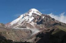 See the glacier at the feet of the majestic Mt Kazbek.