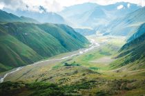 After breakfast, you will be transferred to Truso Valley, you will be walking in an almost abandoned valley in the direction of the South Ossetia borders. Surrounded by dramatic cliffs, you will also see orange, white and red travertine formations from mineral springs. Visit beautiful blue Abano Lake and explore the ruins of Zakagori fortress. At the end of the hike you will transfer back to the guesthouse.