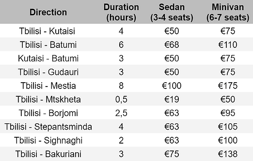 You can transfer from Tbilisi airport in any direction. Arrive in Kutaisi? Also not a problem. If you don’t see in the list destination that you wish for, write us and we’ll help you.